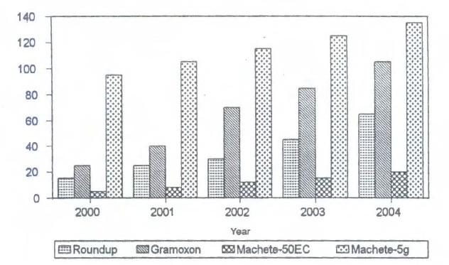 weeds. The negative aspects have some effect on adoption of herbicides. Though the consumption pattern shows the