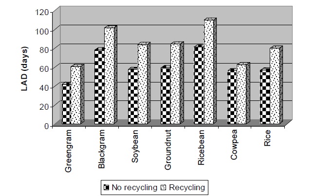 wheat was higher due to residual effect of ricebean fodder, blackgram and groundnut; LAI, LAD and CGR were higher in