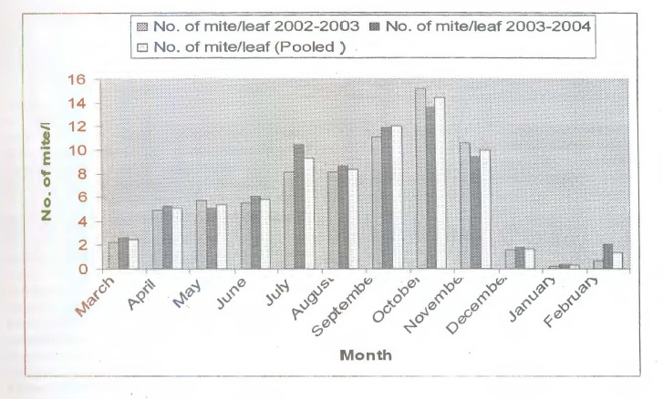 increasing in Februazy/March and attained maximum (14.42 mites/leaf) during moderately dryer and cooler period