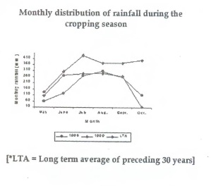 Fig 1: Monthly distribution of rainfall during the cropping season