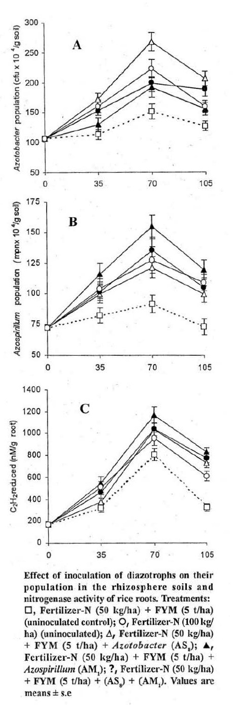 recorded, with the proliferation of Azotobacter and Azospirillum, either alone or in combination, in the rhizosphere