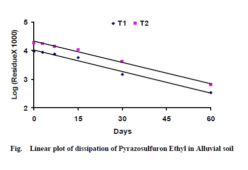 30 days which further increased to more than 95% by 60 days. The rate of dissipation of pyrazosulfuron- ethyl was