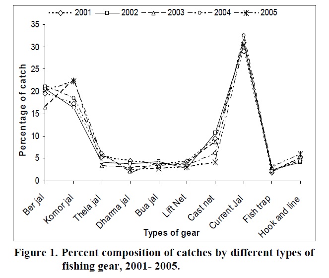 operation. Increasing rate of seine net (Kapuri jal) and gill net (current jal) were identified as detrimental gear