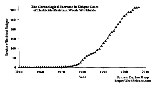 1970 in the United States. Since then, a large number of weed species has evolved resistance to several classes of herbicide.